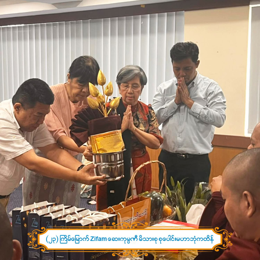 📌 (၂၀၂၅)ခုနှစ်၊ အောက်တိုဘာလ (၂၃)ရက် (ကြာသပတေးနေ့)တွင် Zifam ဆေးကုမ္ပဏီ မိသားစုဝင်များမှ (၂၃) ကြိမ်မြောက် စုပေါင်းမဟာဘုံကထိန်ကို ကျင်းပပြုလုပ်ခဲ့ပါသည်။