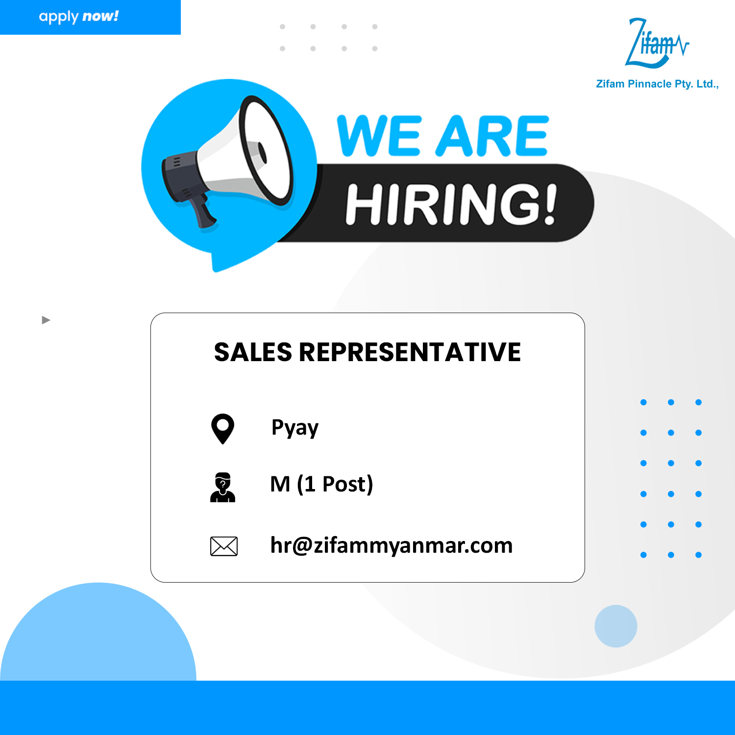 Sales Representative (Pyay) – M (1 Post)