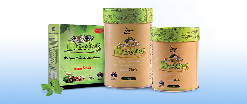 Naturally Better သဘာဝဆီးချိုသကြားသည် Stevia (စတီးဗီးယား) အရွက်မှ သန့်စင်ထုတ်လုပ်ထားသော သကြားနှင့် သဘာဝအချိုဓာတ်ဖြစ်သော Erythritol (အယ်ရီသရီတော) တို့ ပေါင်းစပ်ပါဝင်သော ၁၀၀% သဘာဝဆီးချိုသကြားဖြစ်ပါသည်။
