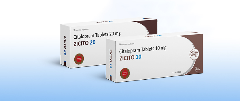 ZICITO contains Citalopram, a selective serotonin reuptake inhibitor (SSRI). Citalopram hydrobromide is a racemic bicyclic phthalane structure and is designated (+)-1-(3-dimethylaminopropyl)-1-(4-fluorophenyl)-1, 3dihydroisobenzofuran-5-carbonitrille hydrobromide with the following structural formula: